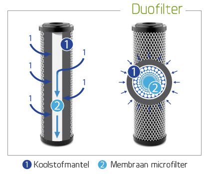 Onze filter werkt 100% of niet. De kwaliteit van het water blijft continue hetzelfde. Is de filter toe aan vervanging, dan kan je hem niet meer gebruiken. Dat is een groot verschil met waterfilters die je wel nog kan gebruiken zodra je de filter eigenlijk moest vervangen. Sterker nog: sommige filters verslechteren de kwaliteit van je water als je ze nog gebruikt na de aanbevolen vervangdatum.